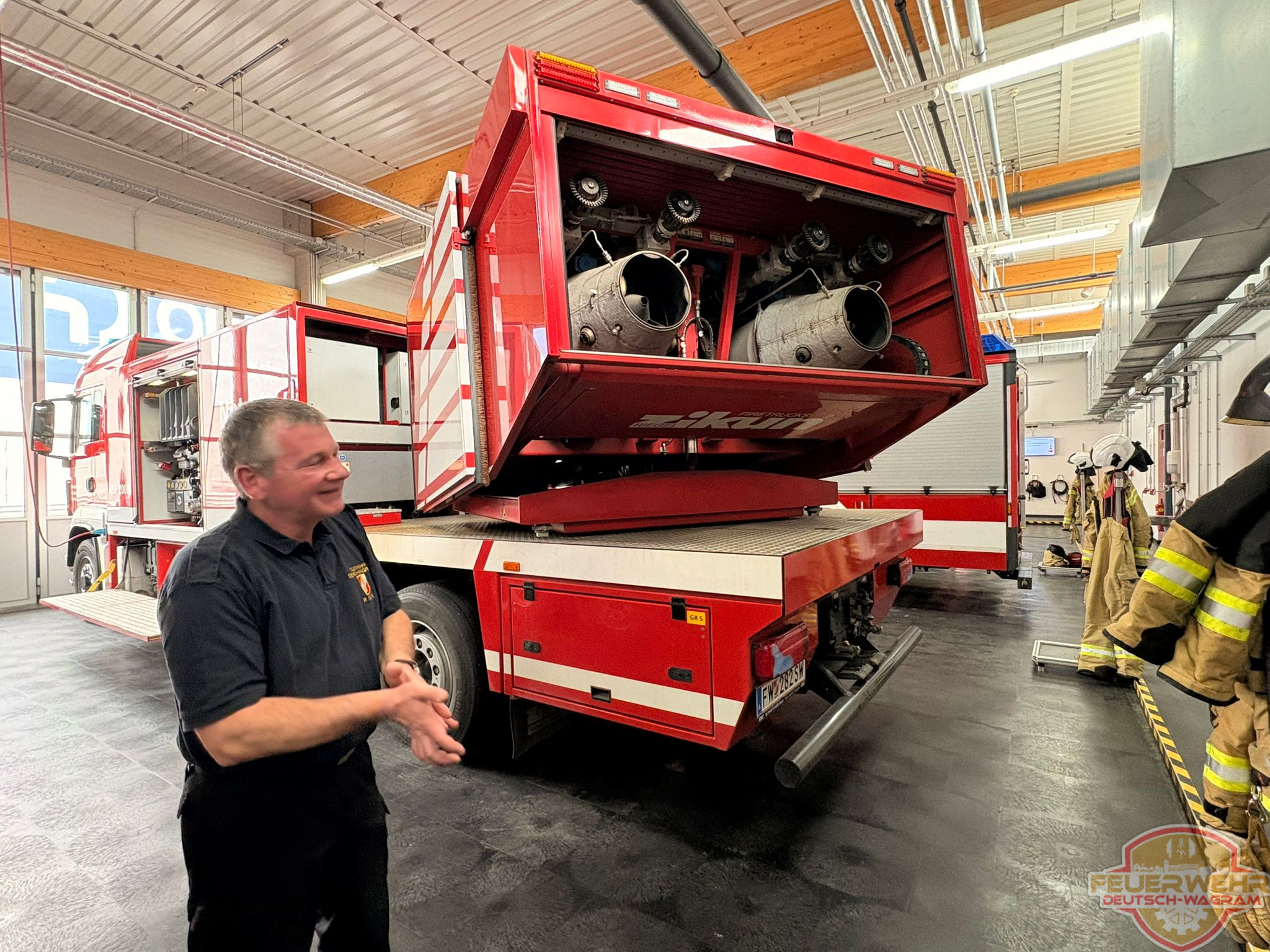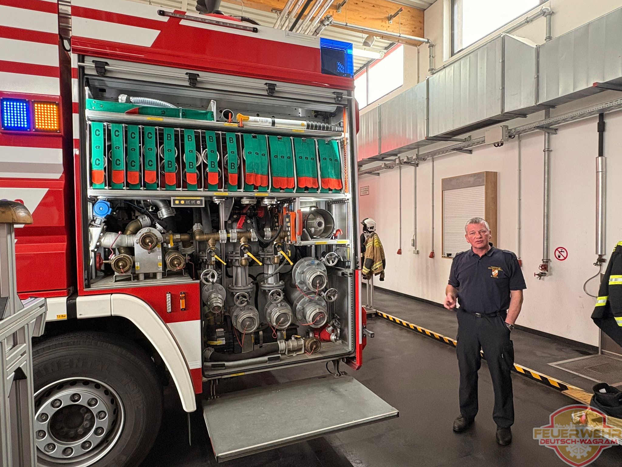 Unser Kamerad EHBM Wolfgang Rappl hielt dabei einen äußerst interessanten und informativen Vortrag über die Fahrzeuge sowie die eingesetzte Technik. Außerdem erhielten wir vor Ort wertvolle Einblicke in den abwechslungsreichen und anspruchsvollen Alltag einer Betriebsfeuerwehr.