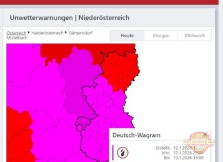 Aufgrund bevorstehenden Schneeregens wird für Ostösterreich, besonders bei uns im Marchfeld und rund um Wien eine Glatteiswarnung bis morgen später Nachmittag vom Wetterdienst ausgesprochen!