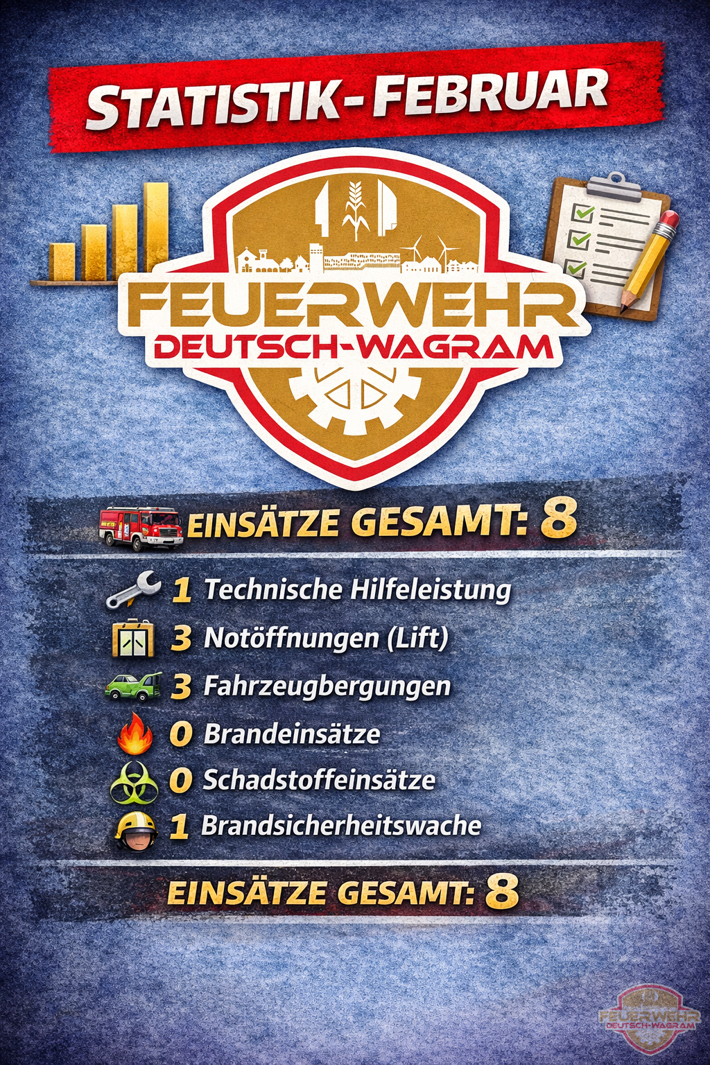 Insgesamt wurden wir im Februar zu 8 technischen Einsätzen alarmiert.