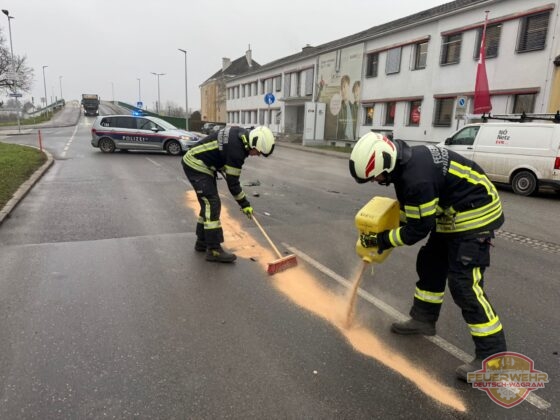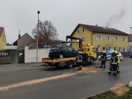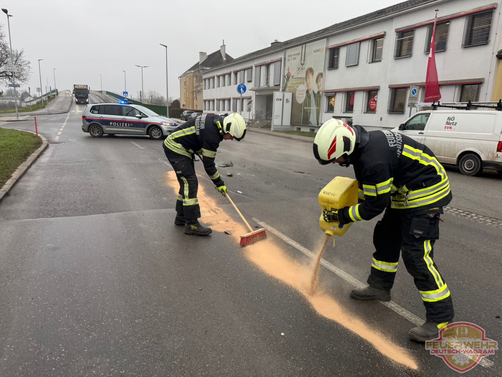 Da die Unfallstelle bereits von der Polizei abgesichert war, konnte umgehend mit dem Freimachen der Straße begonnen werden. Zunächst wurden auslaufende Betriebsstoffe gebunden, um eine Kontamination des Kanals zu vermeiden.