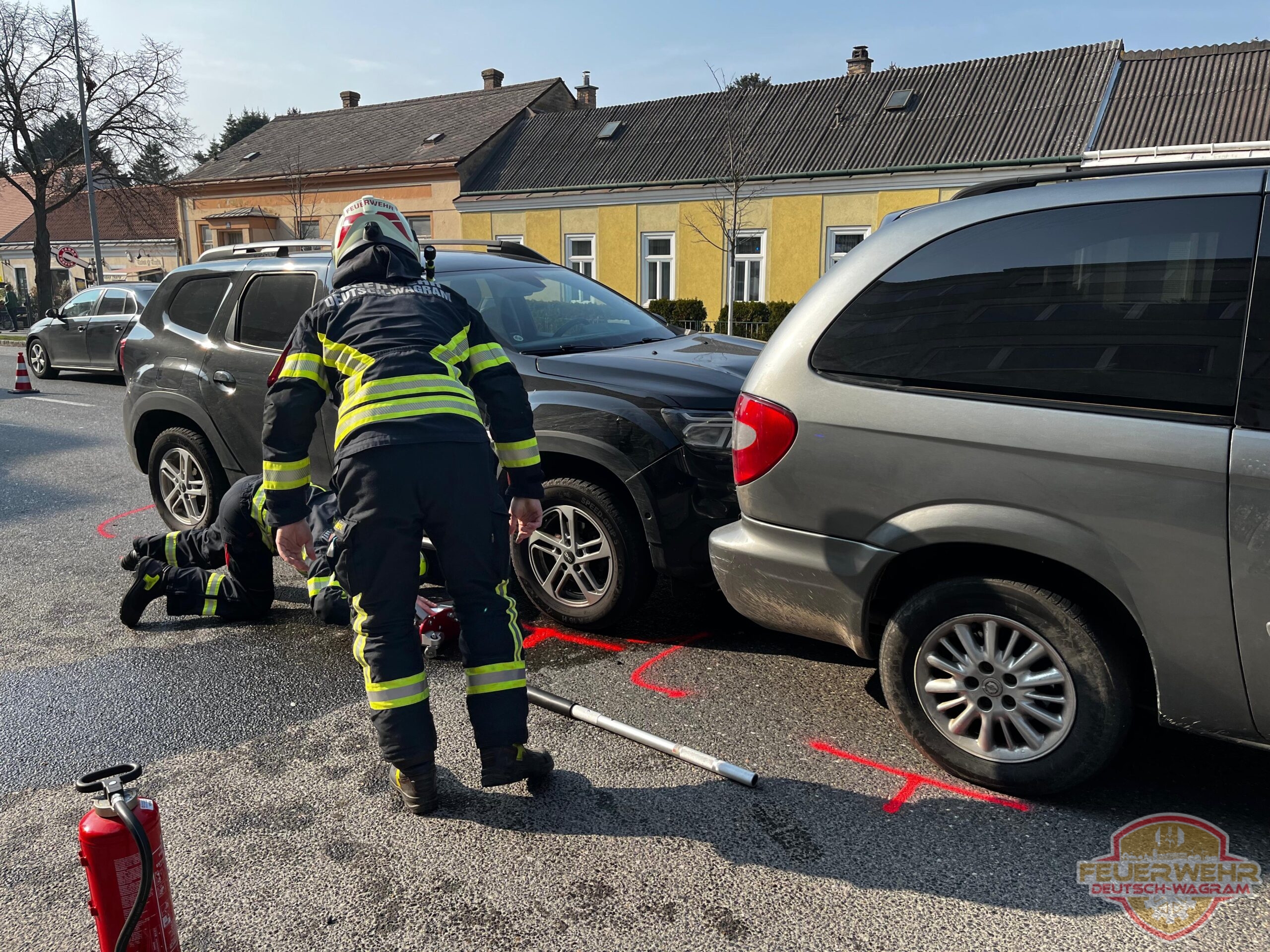In weiterer Folge wurde eines der Fahrzeuge mittels Wagenheber angehoben, wodurch die Verkeilung der Fahrzeuge gelöst werden konnte. Anschließend wurden ausgetretene Betriebsmittel gebunden, die Batterien der Fahrzeuge abgeklemmt sowie die Fahrbahn gereinigt.