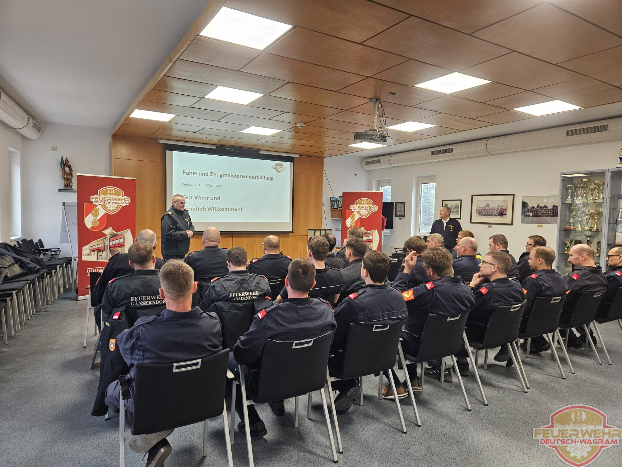 Am 10. April 2026 fand in unserem Feuerwehrhaus eine Weiterbildung für die Fahr- und Zeugmeister des Abschnittes Gänserndorf statt. Insgesamt 27 Teilnehmer nutzten die Gelegenheit, ihr Fachwissen auf den neuesten Stand zu bringen.